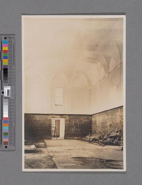 Huntington Library Construction: view showing an office, Main Building, looking east