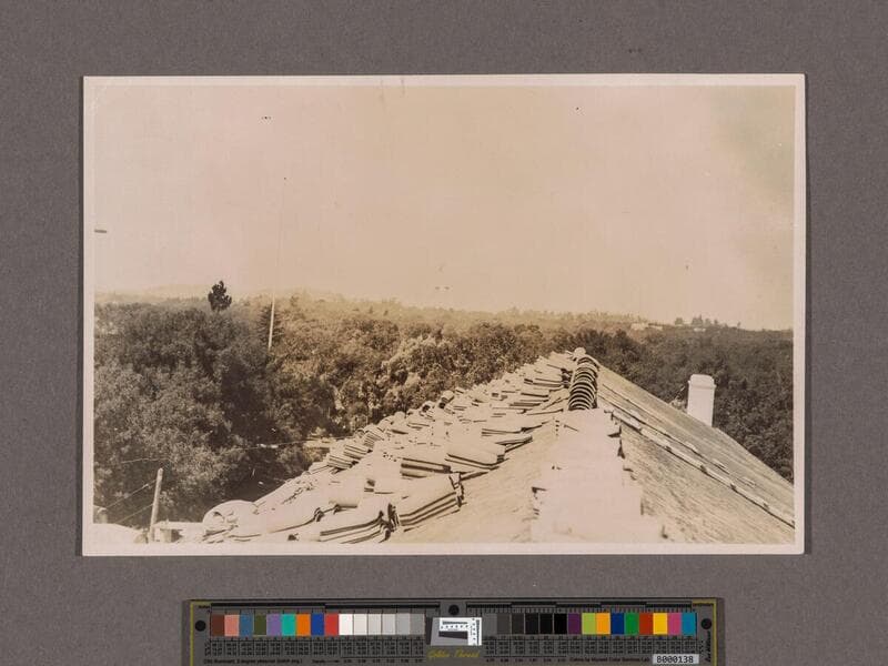 Huntington Library Construction: view showing the roof of the Main Building, looking west