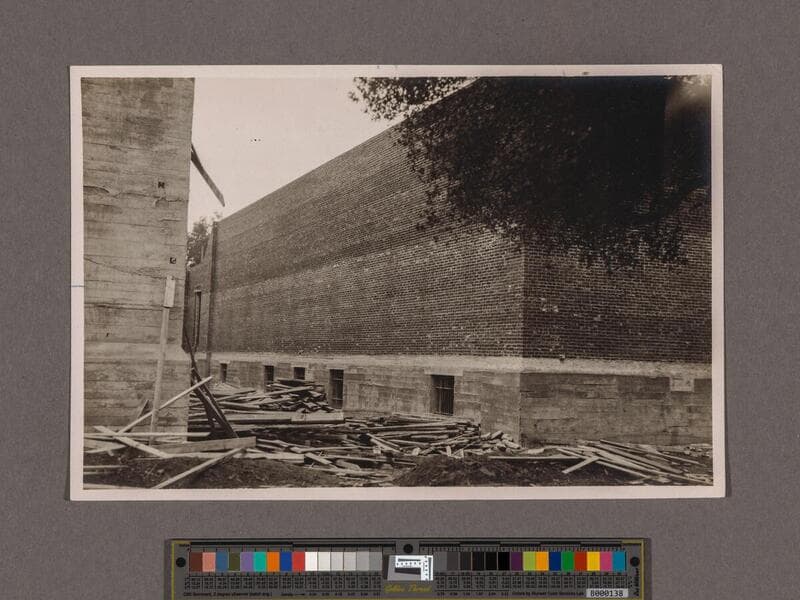 Huntington Library Construction: view showing the west side of the East Wing, looking north