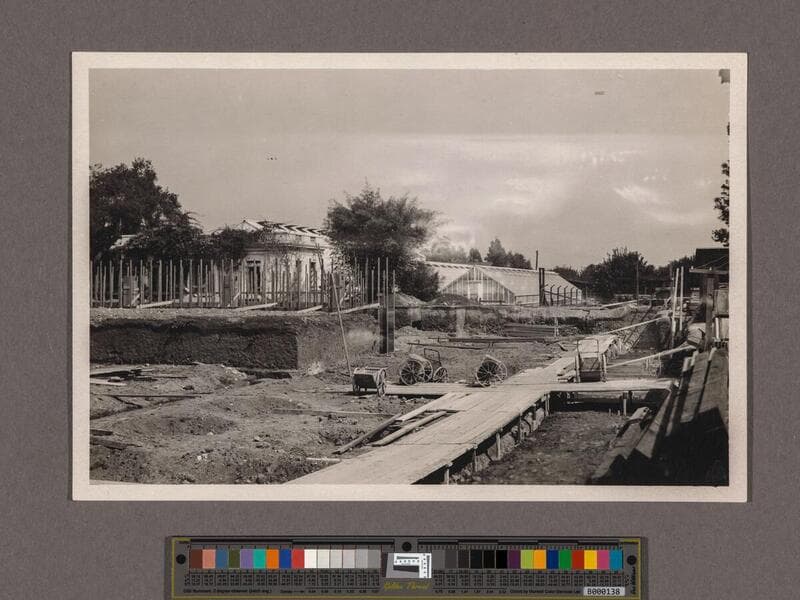 Huntington Library Construction: view showing the excavation for the Main Building, looking east