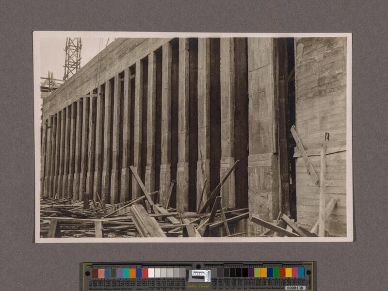 Huntington Library Construction: view showing the east side of the Center Wing, looking south