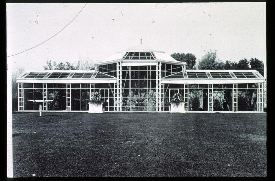 A wide view of the entire aviary. The label that accompanies this photo in the album reads "No. 53 Center house of aviary. About 1915."