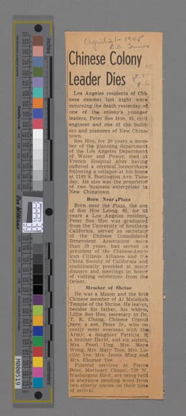 Receipt and clipping from the Chinese Times, along with an envelope.