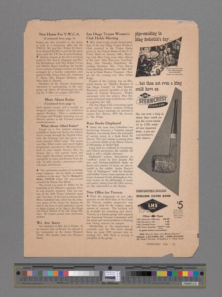 Invitation and announcement of the speaker at the May meeting of the China Society of Southern California at the Soo Chow Cafe. Includes announcement of the death of Peter SooHoo