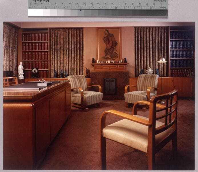 Photograph of the interior of Y.C. Hong's law office showing his desk.
