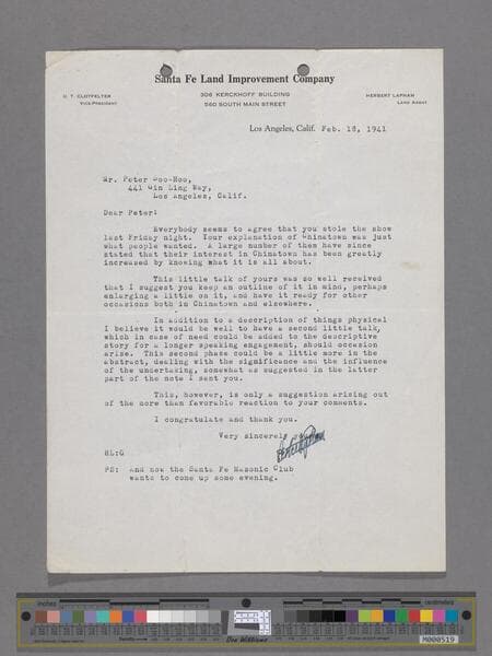 Letter from Herbert Lapham to Peter SooHoo