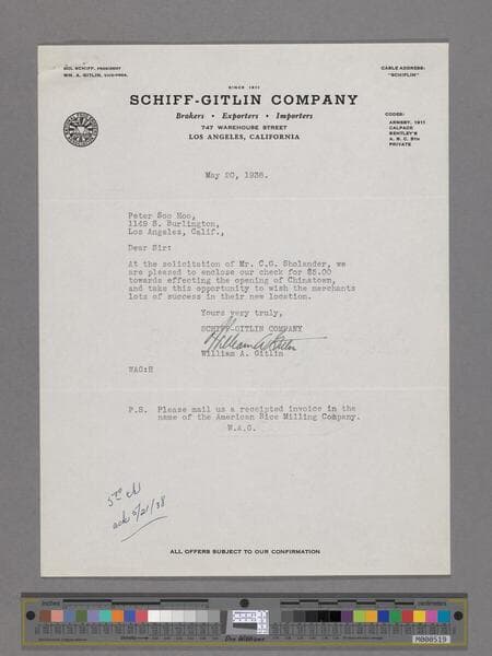 Letter from SooHoo to Shoong discussing the possibilityof his buying into the New Chinatown project. The enclosure is a letter from Herbert Lapham to Peter SooHoo discussing the sale of land.