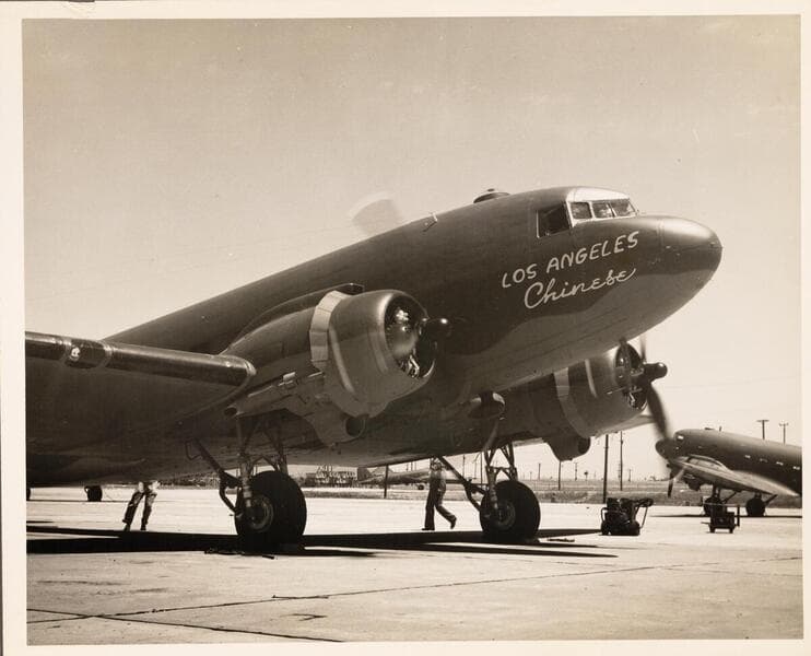 Military two-engine evacuation airplane named "Los Angeles Chinese"