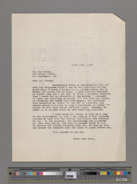 Letter to Joe Shoong