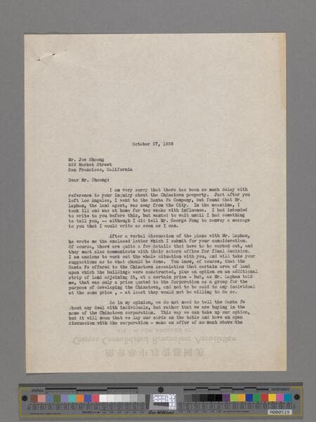 Letter from Joe Shoong to Peter SooHoo and George Fong