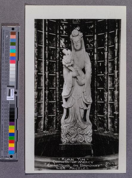 Image of Gin Ling Way looking towards the West Gate. Printed on the postcard at the bottom: Street Scene - Ginling [Gin Ling] Way / L.A. New Chinatown - No. Broadway / Quillen Photo / 1850 - c.
