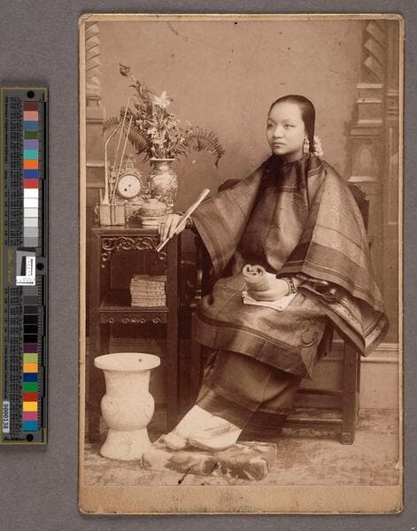 This collection contains photographs of Los Angeles' Old Chinatown and portraits of its Chinese residents, most dating from the 1890s to the 1900s. Together there are 299 glass plate negatives ranging in size from 3 1/4 x 4 1/4 inches to 8 x 5 inches; an ornate photograph album containing 12 studio portraits of Chinese men and women; and six additional card photograph portraits. Some printed photographs have the imprints of professional photographers and a few of the glass plate negatives are credited to "Yee Photo, L.A. Cal." They may be connected to a photographer "Yee" who at one time had a studio at 510 North Los Angeles Street in Old Chinatown (see photograph Box 8 (1)). This could possibly be Wy Yee, a photographer working during the same time period. It is unclear if he took all the photographs or there was more than one photographer. There are two glass plate images of a photographer's storefront with a sign in Chinese that translates to Jinghua Photo Studio. Scenes in Old Chinatown include: street views of buildings and storefronts; Chinese and a few white people walking in the streets; the interior of a restaurant and three Chinese workers posing for the camera; two men on bicycles; the Chinese community participating in La Fiesta de las Flores parade; and other candid photographs of people in daily activities. Some buildings have store signs in English and Chinese. The majority of photographs are portraits of primarily Chinese sitters. Several are posed studio portraits of men, women, or children, wearing traditional Chinese or western clothing, with elaborate props and backdrops. Other portraits are simple head shots of Chinese men, one of which has the handwritten date "1902," the year that the Chinese Exclusion Act of 1882 was made permanent and required Chinese residents to register and obtain immigration documents. Other photographs include: three studio images of women showing bare shoulders, a Chinese woman posing in a sailor's uniform, and white tourists posing in traditional Chinese clothing. Photographer imprints on card photographs are: Bijou Studio, James Blanchard, George Dewey, J. H. Lamson Company, Michael A. Wesner, and "Yee," who may be photographer Wy Yee, all of Los Angeles. There is one portrait of a Chinese woman by William Shew, San Francisco. The China subseries consists of copies of photographs taken in China, including landmarks and scenes of punishment. Please note that this subseries contains historical images that library users may find harmful, offensive, or inappropriate. Miscellaneous photographs include images of Native Americans and a town in the Southwest.