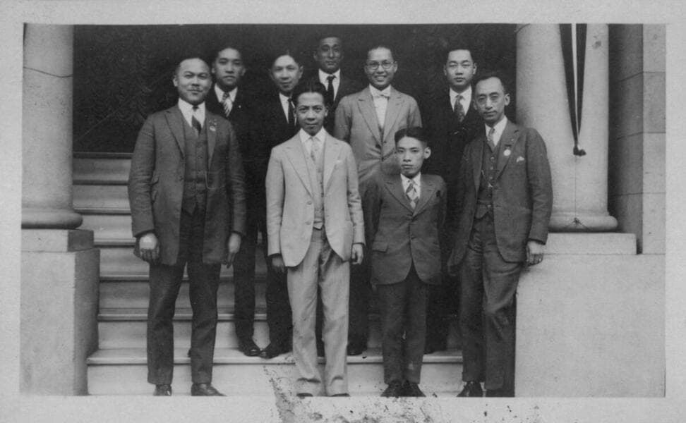 This picture depicts a group of Chinese American Citizens Alliance members. Y. C. Hong is the second person from right in the front row. Thomas S. Wong is in the back row on the right.