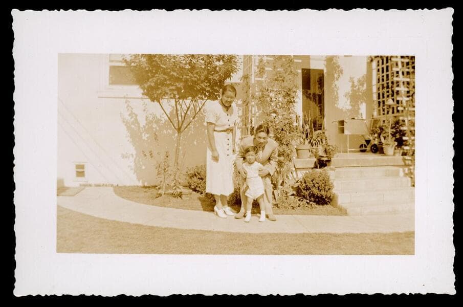 This photograph of Mabel and Y. C. Hong was taken in the front yard of their home at 1045 S. Gramercy Place.