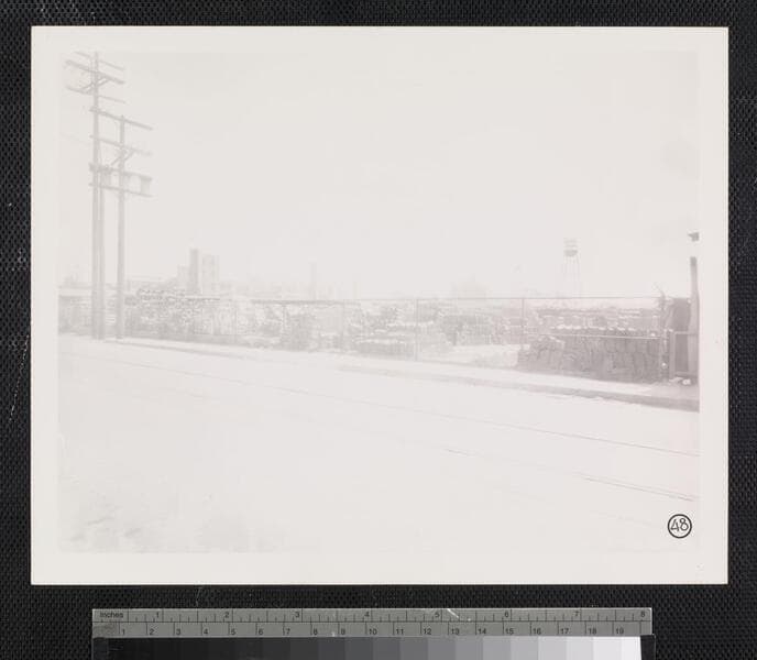 This collection contains 131 black-and-white photographs (including some duplicates) of views of building exteriors and streets scenes in Old Chinatown and neighboring residential and industrial areas of downtown Los Angeles, California, that were taken prior to the demolition of the area beginning on December 23, 1933, to make way for the Los Angeles Union Station railroad terminal. The photographs consist of eye-level street views focused on the area of downtown Los Angeles, around Apablasa Street (spelled Apalabasa or Apalabassa on the images), that was bordered by Alameda Street to the west, Aliso Street to the south, Date and College Streets to the north, and Lyon to the east. The views include images of industrial and commercial areas; retail storefronts; warehouses; manufacturing; utility and railroad buildings; houses and apartments with balconies; dirt streets and alleys; children; automobiles; and dilapidated and vacant buildings. The signage on retail buildings often reflects the Chinese and Hispanic heritage of residents and shop owners in the area. The photographer is unidentified, but presumably the photographs were created to aid in planning for the project, perhaps as part of the process of determining property valuation.