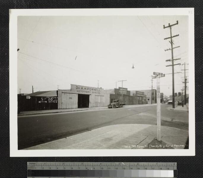 This collection contains 131 black-and-white photographs (including some duplicates) of views of building exteriors and streets scenes in Old Chinatown and neighboring residential and industrial areas of downtown Los Angeles, California, that were taken prior to the demolition of the area beginning on December 23, 1933, to make way for the Los Angeles Union Station railroad terminal. The photographs consist of eye-level street views focused on the area of downtown Los Angeles, around Apablasa Street (spelled Apalabasa or Apalabassa on the images), that was bordered by Alameda Street to the west, Aliso Street to the south, Date and College Streets to the north, and Lyon to the east. The views include images of industrial and commercial areas; retail storefronts; warehouses; manufacturing; utility and railroad buildings; houses and apartments with balconies; dirt streets and alleys; children; automobiles; and dilapidated and vacant buildings. The signage on retail buildings often reflects the Chinese and Hispanic heritage of residents and shop owners in the area. The photographer is unidentified, but presumably the photographs were created to aid in planning for the project, perhaps as part of the process of determining property valuation.