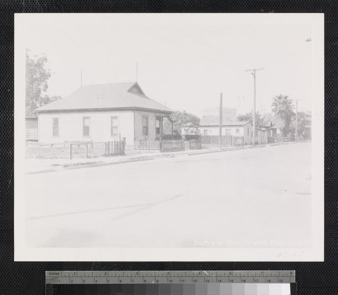 This collection contains 131 black-and-white photographs (including some duplicates) of views of building exteriors and streets scenes in Old Chinatown and neighboring residential and industrial areas of downtown Los Angeles, California, that were taken prior to the demolition of the area beginning on December 23, 1933, to make way for the Los Angeles Union Station railroad terminal. The photographs consist of eye-level street views focused on the area of downtown Los Angeles, around Apablasa Street (spelled Apalabasa or Apalabassa on the images), that was bordered by Alameda Street to the west, Aliso Street to the south, Date and College Streets to the north, and Lyon to the east. The views include images of industrial and commercial areas; retail storefronts; warehouses; manufacturing; utility and railroad buildings; houses and apartments with balconies; dirt streets and alleys; children; automobiles; and dilapidated and vacant buildings. The signage on retail buildings often reflects the Chinese and Hispanic heritage of residents and shop owners in the area. The photographer is unidentified, but presumably the photographs were created to aid in planning for the project, perhaps as part of the process of determining property valuation.