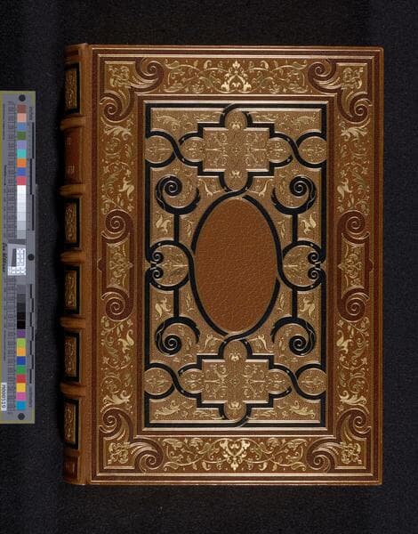 Chancery folio, with paper measuring 26.9 x 19.5 cm. Text printed in double columns; 40 lines per col.; col. width: 6.6 cm.; area of text: 20 x 14.1 cm. With initial spaces, guide-letters, and signatures; without foliation and catchwords. Includes 11 full-page woodcut illustrations: Almighty God seated in glory (a1v); the creation of angels and fall of demons (a8v); the creation of Eve and anatomical man (c4v); the ages of man, a physician and surgeon attending patients (m7v); the earth and the spheres ([long s]7v); occupations of the months (u2v); birds (y7v); fishes ([z with a crossbar]7v); a landscape showing a river and towns, etc. (A1v); trees and plants (F1v); and animals and reptiles (Q2v). Signatures: 2a⁶ 2b⁴ a-r⁸ [rounded r]⁸ [long s]⁸ s-t⁸ v⁸ u⁸ w⁸ x-z⁸ [z with crossbar]⁸ [con]⁶ ẽ⁶ A-V⁸ W⁸ X-Y⁸ 2A-2B⁸ 2C-2D⁶ 2E⁸. (2a1, ẽ6, and 2E8 blank). Imperfect: blank leaves 2a1, ẽ6 and 2E8 lacking. Binding error: gatherings 2a and 2b misbound at end. Large initial on leaf a2r in blue and red; subsequent initials in red. Binding: brown morocco; binder's stamp: Club Bindery 1899.