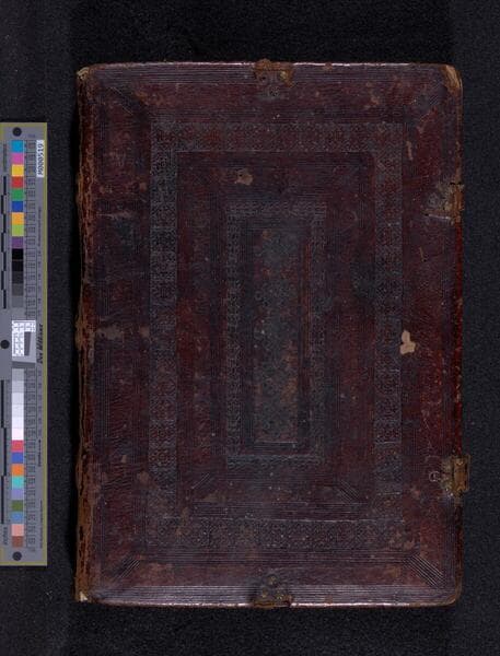 Almanac in German with astrological notes and illustrations. Chancery quarto, with paper measuring 20.2 x 15.5 cm. Signatures: [a-h⁸ i⁶ (a1, i6 blank)]. Illustrations hand colored. Running titles, rubrication and numbering of the days of the month in red. Leaf a1 damaged and mounted on free endpaper at beginning. Binding: contemporary German blindstamped calfskin over boards; remnants of metal clasp. Rebacked.