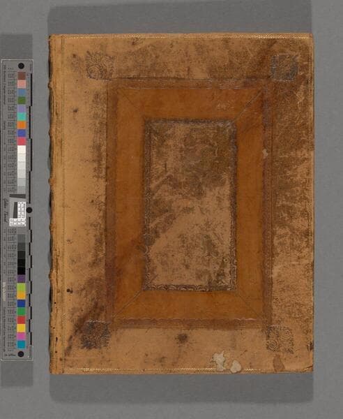 Spaces left on leaves [a]1r and [i]1r for incipits to be added by hand; initial spaces. Signatures: [a-f¹⁰ g⁸ h¹² i-n¹⁰ o-p⁸ *⁴]. Illuminated decorations on leaf [a]1r with blue and maroon flowers with gilt scrolling in Ferrara style, blue capital "S" in gilt panel with red and green fill. Coat of arms [obliterated] in gilt circle in bottom margin. On leaf [i]1r blue and maroon flowers on inner margin with red capital 'M' in gilt panel. Other initials and rubrication in red or blue. Incipits on leaves [a]1r and [i]14 written in red. Binding: mid-18th century Spanish[?] gilt-tooled blue morocco[?].