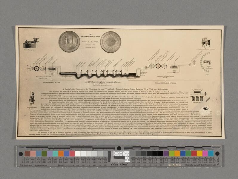 A remarkable experiment in phonographic and telephonic transmission of sound between New York and Philadelphia, printed card, recto
