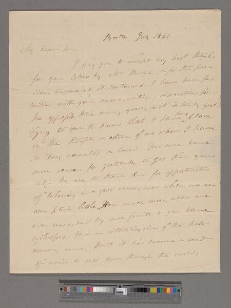 Channing, William Ellery. Letter to Thomas Clarkson