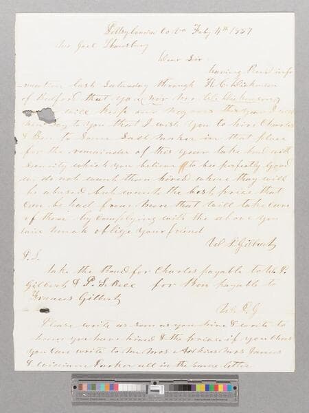 Letter regarding hiring out Charles and Ben by W. P. Gilbert