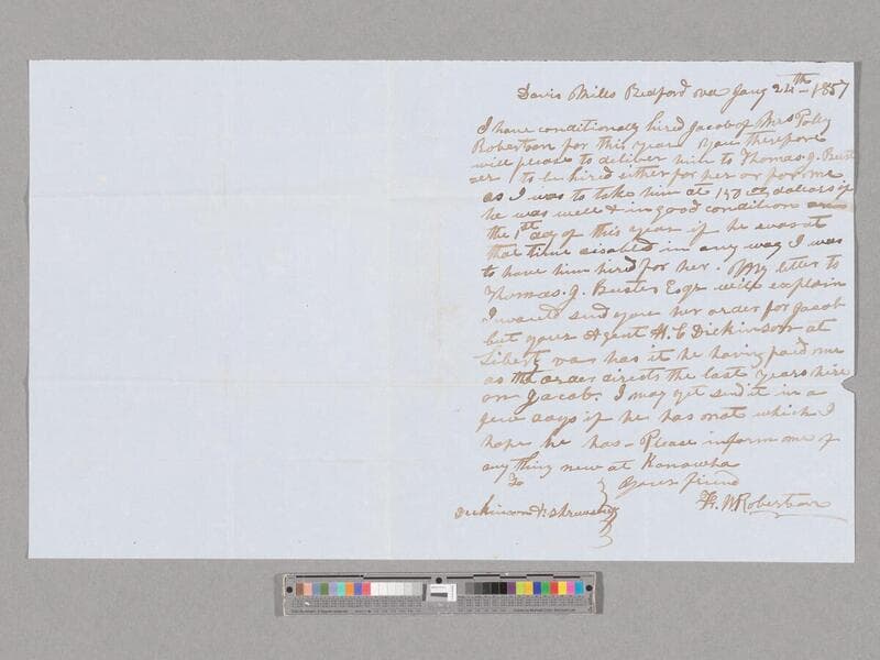 Letter regarding hiring out Charles and Ben by W. P. Gilbert