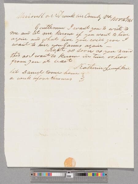 Letter regarding hiring Daniel and Jim by Katherine Lumkin