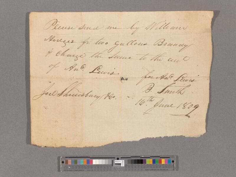 Requisition for brandy by Andrew Lewis and B. Smith via William Hodges