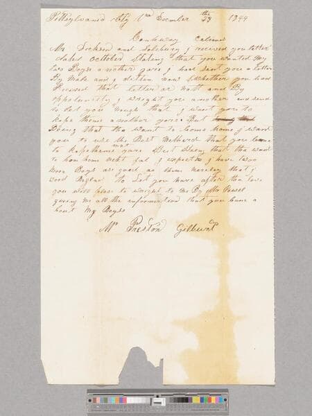 Letter regarding hiring out Charles and Ben by W. P. Gilbert