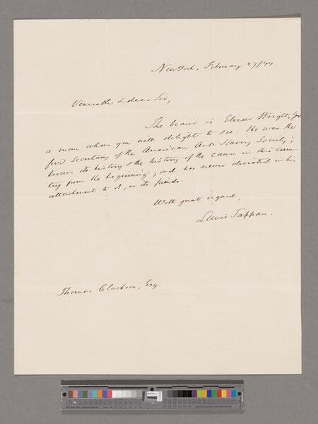1p. New York. On reverse: 1844 Mar. 27. Wright, Elizabeth. Letter to Thomas Clarkson (1p).