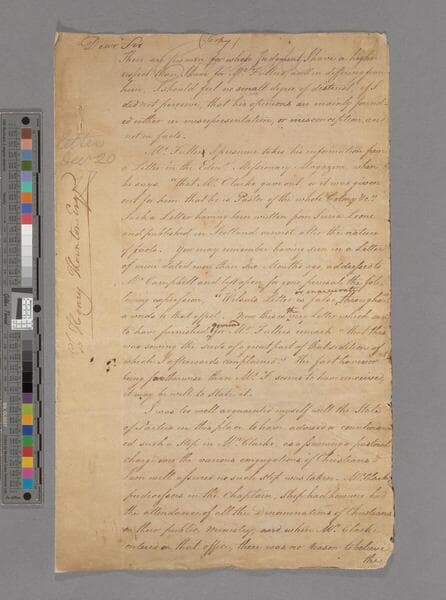 Letters, manuscripts, and documents relating to the affairs of Zachary Macaulay and his family; Hannah More, Clapham Sect, especially Henry Thornton and his family; the antislavery movement, including the affairs of the Sierra Leone Colony, Anti-Slavery society, and activities of William Wilberforce, Thomas Clarkson, and other abolitionists. Of particular importance is Macaulay's journal kept while governor of the Sierra Leone colony. Totaling 1,014 pieces.
