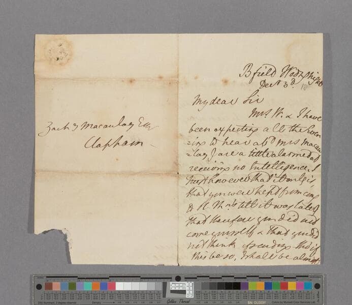 Letters, manuscripts, and documents relating to the affairs of Zachary Macaulay and his family; Hannah More, Clapham Sect, especially Henry Thornton and his family; the antislavery movement, including the affairs of the Sierra Leone Colony, Anti-Slavery society, and activities of William Wilberforce, Thomas Clarkson, and other abolitionists. Of particular importance is Macaulay's journal kept while governor of the Sierra Leone colony. Totaling 1,014 pieces.