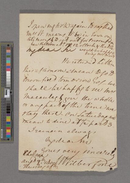 William Wilberforce. Letter to Zachary Macaulay