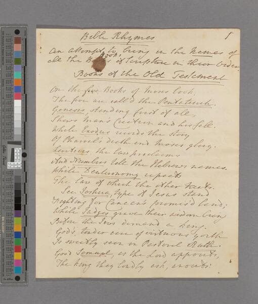 Hannah More. Bible Rhymes: an attempt to bring in the names of all the Books of Scripture in this order