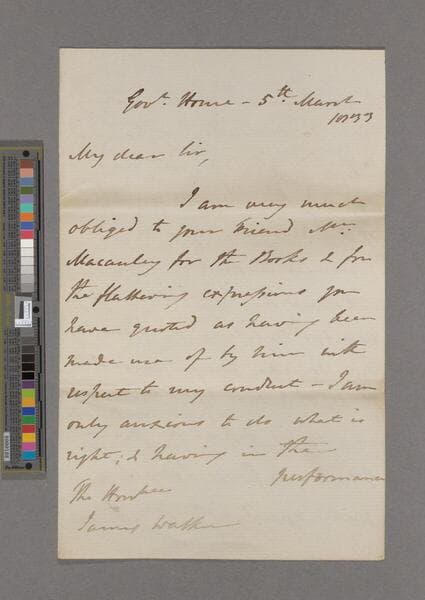 Sir James Carmichael Smyth, 1st Baronet. Letter to Sir James Walker