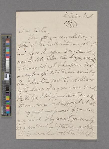 Sir George Otto Trevelyan, 2d Baronet. Letter to Sir Charles Edward Trevelyan, 1st Baronet