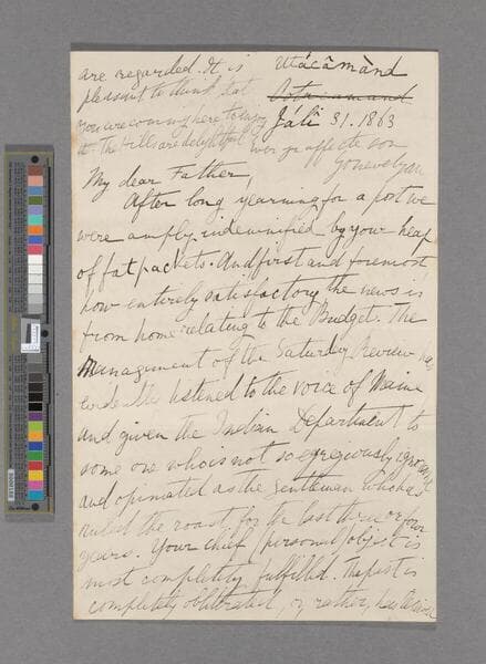 Sir George Otto Trevelyan, 2d Baronet. Letter to Sir Charles Edward Trevelyan, 1st Baronet