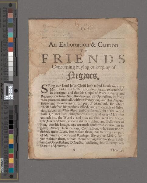 An exhortation & caution to Friends concerning buying or keeping of Negroes