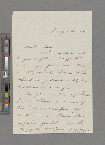 Stowe, Harriet Beecher. Letter to James Thomas Fields
