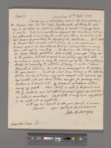 Sharp, Granville. Letter to [John Coakley] Lettsom