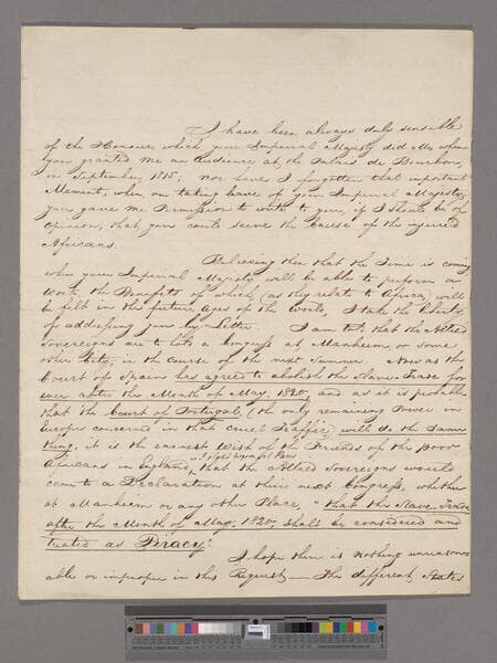 [Clarkson, Thomas]. Letter to [Alexander I], Emperor of Russia