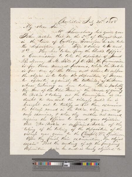 The Dickinson & Shrewsbury records contain personal and business correspondence related to Dickinson & Shrewsbury salt mine company, their business and legal records, and files related to the enslaved labor that the company used in their salt mines including the family of Booker T. Washington, who were enslaved by the Ruffner family. The correspondence series, 1799 to 1880, is mostly between prominent company members and family members. The business files series, 1801 to 1857, are made up of financial accounts for the company. The enslaved labor files, 1806 to 1863, contain a variety of documents related to the enslaved people the company "hired out" from other enslavers to work at the salt mines. Many of the documents of the collection are the result of the dissolution of the company and the many lawsuits that were brought about near the end of the company. The topic of the enslaved people the company used is present in each series. The records also relate to several other companies in the same region such as Joel Shrewsbury & Company, and Dickinsons & Shrewsbury. There are also two maps, 1838 and undated.