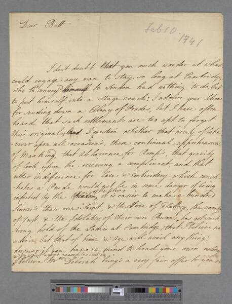 Robinson-Morris, Matthew, 2nd Baron Rokeby. Letter to Elizabeth (Robinson) Montagu
