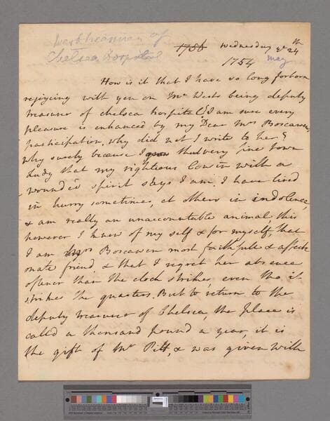 Montagu, Elizabeth (Robinson). Letter to Frances Evelyn (Glanville) Boscawen