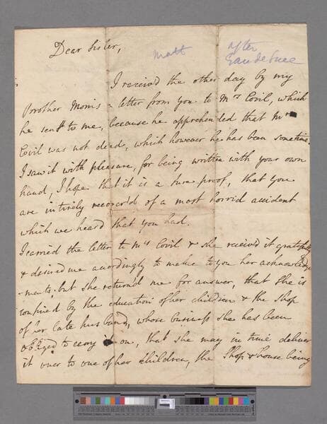 Robinson-Morris, Matthew, 2nd Baron Rokeby. Letter to Elizabeth (Robinson) Montagu