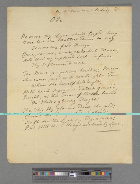 Hammond, James. Ode to Lady D ---- : [a poem in three stanzas]
