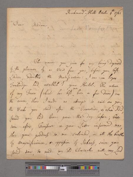 Fermor, Henrietta Louisa (Jeffreys), Countess of Pomfret. Letter to Elizabeth (Robinson) Montagu