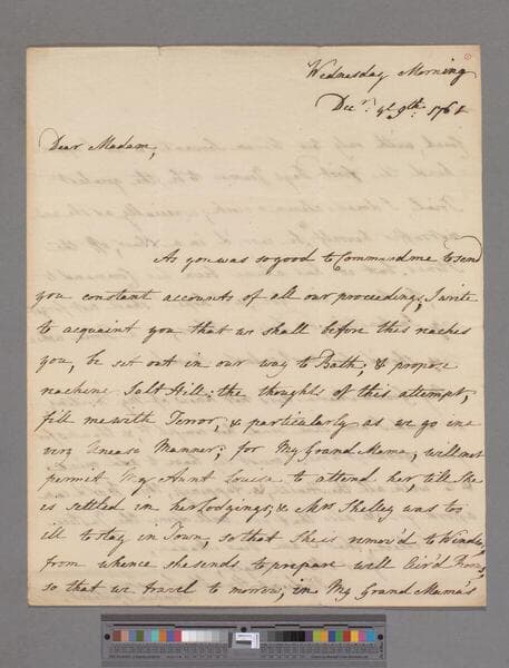 Petty, Sophia (Carteret), Countess of Shelburne. Letter to Elizabeth (Robinson) Montagu